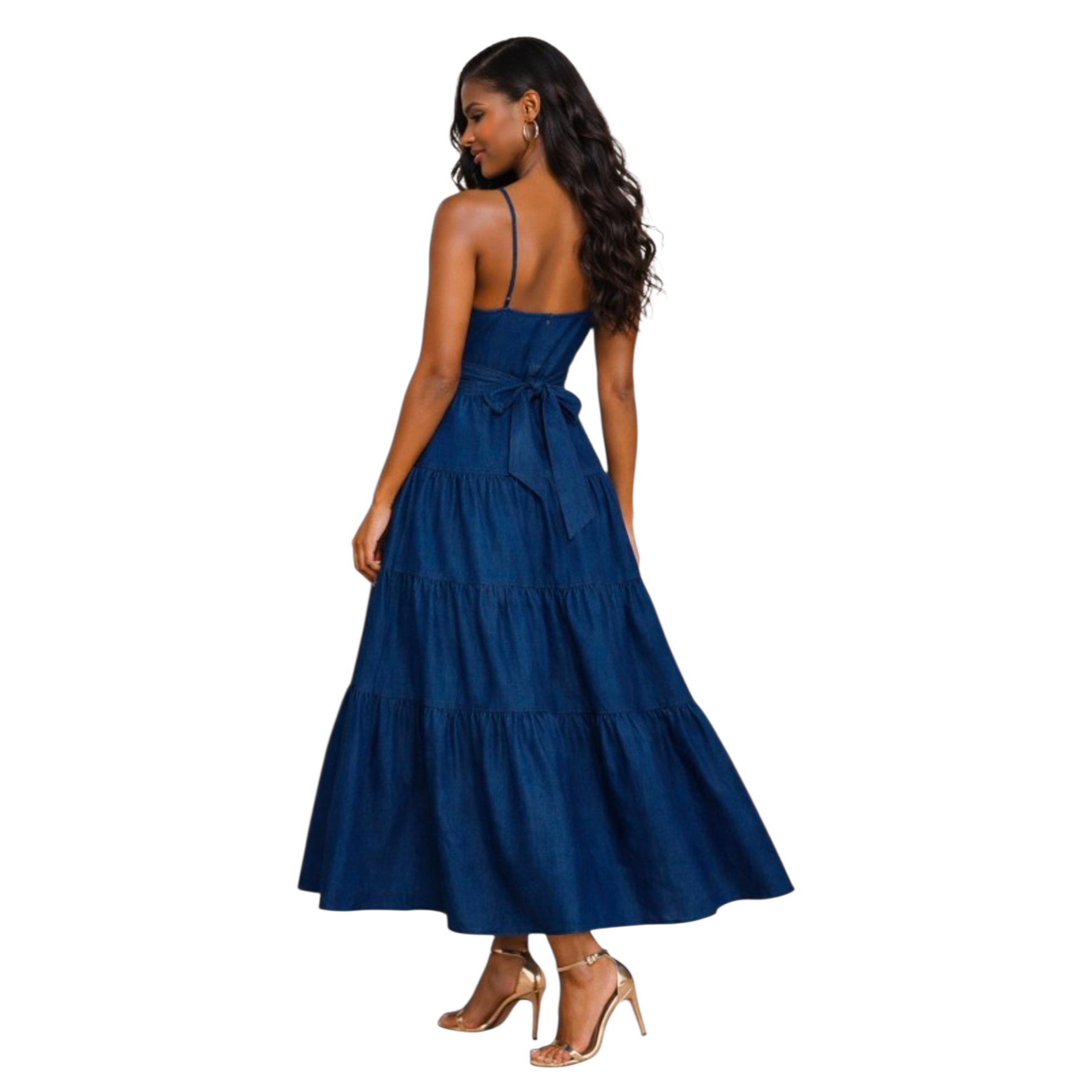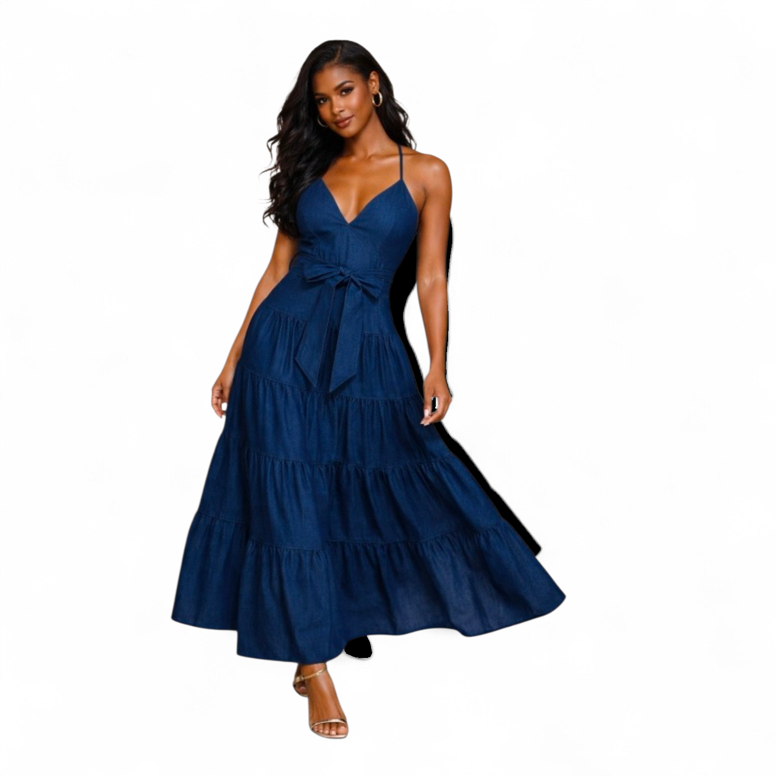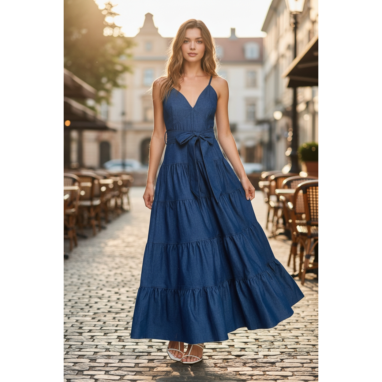 Effortlessly feminine with a modern edge, this denim maxi dress is the perfect blend of casual and elevated style. Designed with a flattering V-neckline and adjustable straps, it offers a customizable fit that enhances your silhouette.